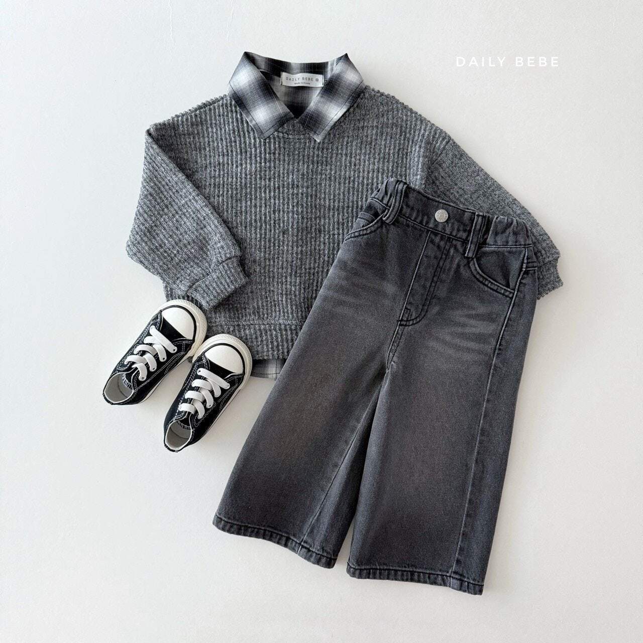 ジュニアサイズ/リブニットトレーナー/130-140cm/DAILYBEBE[お取り寄せ]韓国子供服